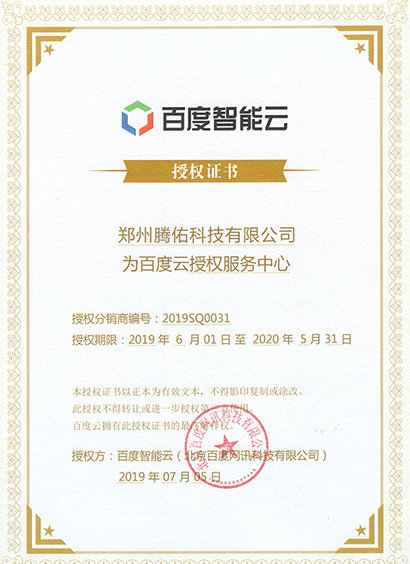 2018年通过与百度智能云合作,百度官方授权我司成为百度智能云官方服务中心,提供百度智能云全线产品的运营、销售、售前售后服务,以中原为主辐射全国,打造本地客户“云上门”服务体验,为不同区域及不同领域的客户提供更优质、更全面的云产品AI解决方案和服务体验。
