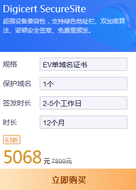 网站防御SSL证书Digicert SecureSite配置价格: