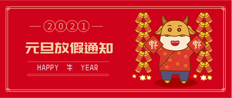 各位新老客户以及全体员工,根据国务院办公厅关于2021年节假日安排的通知精神,我司2021年元旦佳节放假安排具体如下: