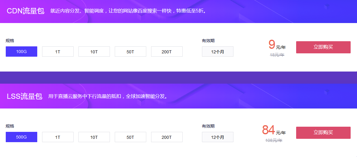 简述:开年盛典 不止于低价 CDN流量包低至9元 多款规格可选,低至5折 CDN流量包 就近内容分发、智能调度,让您的网站像百度搜索一样快,特惠低至5折。 100G 9元/年 1T 99元/年 10T 990元/年 50T