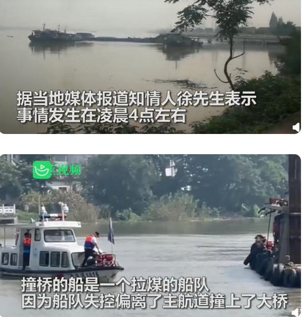 知情人说事故发生在凌晨4点左右。撞桥的船是一个拉煤的船队,共有九条货船加一条驳船,撞上了壁虎大桥。