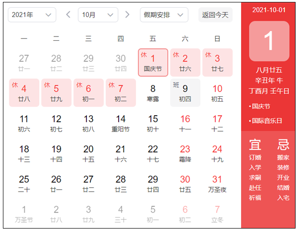 简述:不想工作、乏力、效率低、易烦躁节后上班第一天,你也是这样的状态吗?更重要的是,还有9天就是国庆:本周日(9月26日)要上班。 今年国庆节放假时间为10月1日至7日放假调休7天,