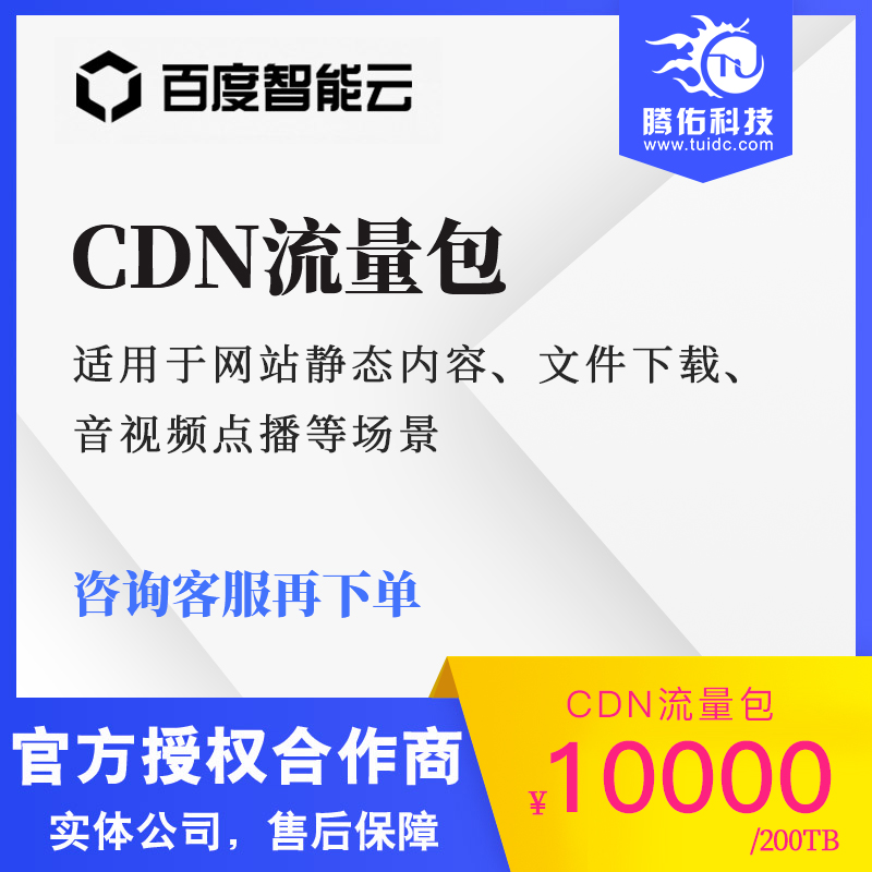200TB大小的cdn流量包多少钱?百度云加速CDN,腾讯加速CDN,阿里云加速CDN,京东云CDN节点部署以及CDN流量包购买就找腾佑科技公司,更多优惠价格以及配置价格表给您发送。折扣优惠福利抢购请点击在线商桥或者拨打400电话:400-996-8756。
